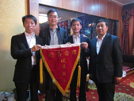 在此次會議上舉行了“三比三看”活動首面流動紅旗頒發(fā)儀式,檸條塔調(diào)運(yùn)部以“管理規(guī)范、團(tuán)隊和諧、服務(wù)優(yōu)質(zhì)、環(huán)境整潔”贏得了廣大司機(jī)、客戶及礦方的認(rèn)可和肯定,從而獲得了首面流動紅旗。檸條塔調(diào)運(yùn)部主管王鵬(。┰跁习l(fā)表了獲獎感言:在廣通神木分公司全力沖刺2012年各項目標(biāo)任務(wù)的關(guān)鍵時期,分公司授予檸條塔調(diào)運(yùn)部的這面綜合管理流動紅旗,不僅激勵了檸條塔調(diào)運(yùn)部全體員工的工作熱情和工作積極性,更是鞭策了廣通神木分公司的全體員工。我們將以此為契機(jī),立足本職,學(xué)習(xí)借鑒兄弟部門的先進(jìn)經(jīng)驗,不斷改進(jìn)自己的工作方式、方法,力爭使檸條塔調(diào)運(yùn)部的各項工作能再上新臺階。